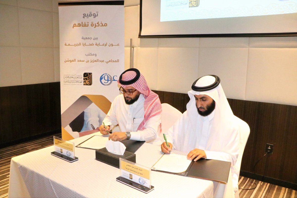 تم توقيع مذكرة تفاهم بين جمعية عون لرعاية ضحايا الجريمة مع مكتب المحامي عبدالعزيز بن سعد العوشن وقد مثّل الجمعية في التوقيع المدير التنفيذي أ. فهد بن محمد القحطاني ، كما مثل المكتب المدير العام المحامي عبدالعزيز بن سعد العوشن ، وتُعدُّ.